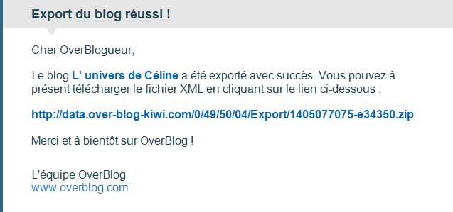 Par contre attention, overblog ne permet l’export que si vous êtes en prémium.
