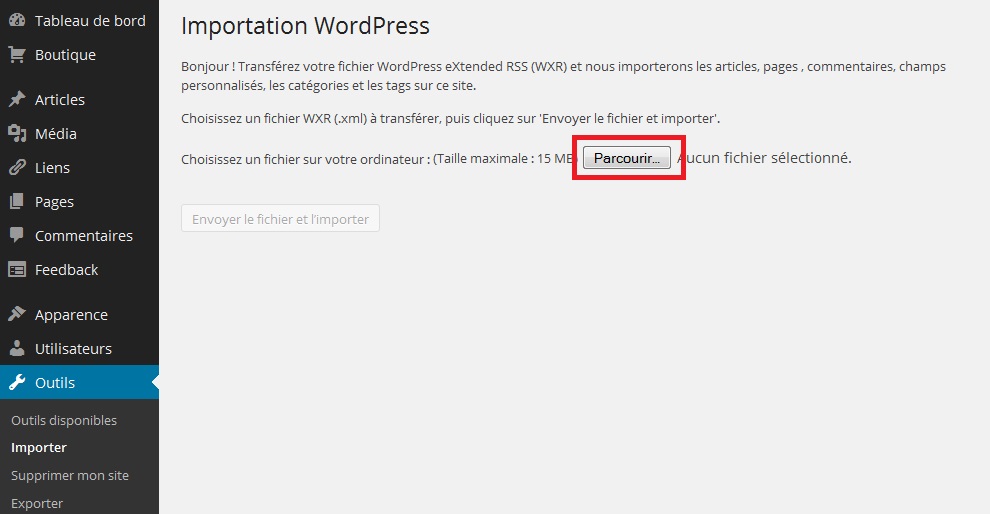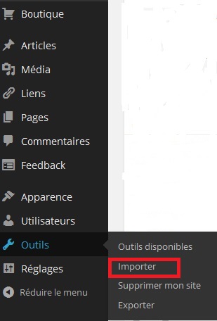 1° Dans Outils, choisir Importer
