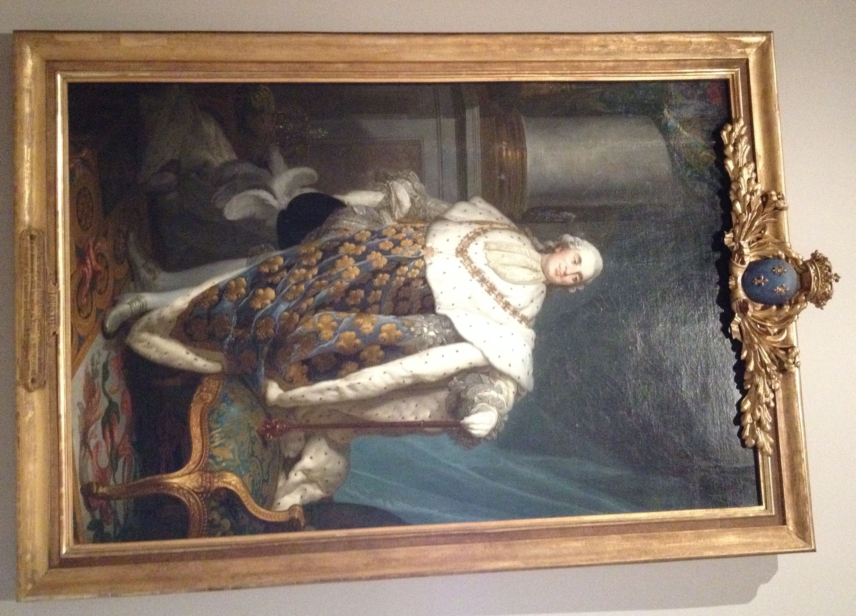 La scénographie est plutôt bien faite, en effet, elle reprend l’ordre du sacre. L’exposition s’ouvre sur une vidéo expliquant le rituel du sacre. Cette vidéo, on le découvre plus tard, est illustrée de tableaux présents dans l’exposition. Les tableaux illustrant chaque étape proviennent en partie du magnifique fonds de Versailles.