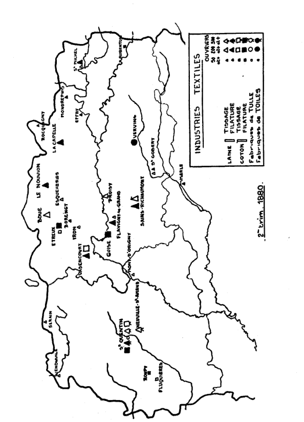 L’industrie de la laine était la plus importante en 1880 puisqu’elle employait 6.600 ouvriers, plus de la moitié de ceux qui se trouvaient alors dans toute l’industrie textile et plus du quart de tous les ouvriers vivant alors dans le département. Elle était concentrée à peu près uniquement dans les deux rrondissements du nord : ceux de Vervins et de Saint-Quentin.