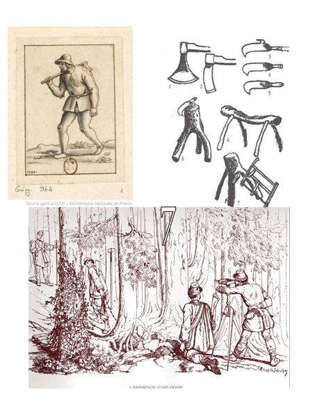 J’ai pensé aussi à arpenteur pour l’image du bas, mais les outils du haut sont ceux d’un bûcheron…