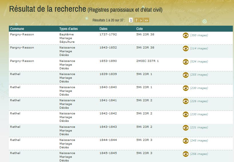 Je suis certaine d’une chose j’ai très peux de chance de trouver mon sosa 1000 un jour, en effet, mon problème se résume en deux mots : archives inexistantes. En effet, pour mon malheur cette branche est originaire des Ardennes, or il y a de grands manques dans les fonds. L’explication est donnée par le site des archives des Ardennes « Si l’on déplore de nombreuses pertes dues aux conflits mondiaux dans la collection du greffe, les Archives départementales s’efforcent de les combler quand cela est possible, en empruntant l’exemplaire communal pour microfilmage puis numérisation. Mais il faut signaler que certaines communes du département, notamment dans le Vouzinois, ne conservent plus aucun acte d’état civil antérieur à 1918. D’autres sources, telles que les actes de catholicité, permettent parfois de pallier ces lacunes. »