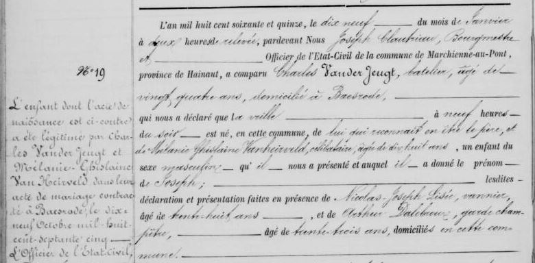 Acte de naissance de Joseph VANDER JEUGT – Dernière partie