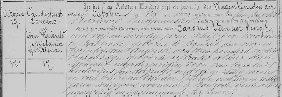 Mais ma chance n’aura duré qu’un acte, ses parents se sont mariés à Baesrode (Baasrode en Néerlandais) en Flandre le 19 octobre 1875.