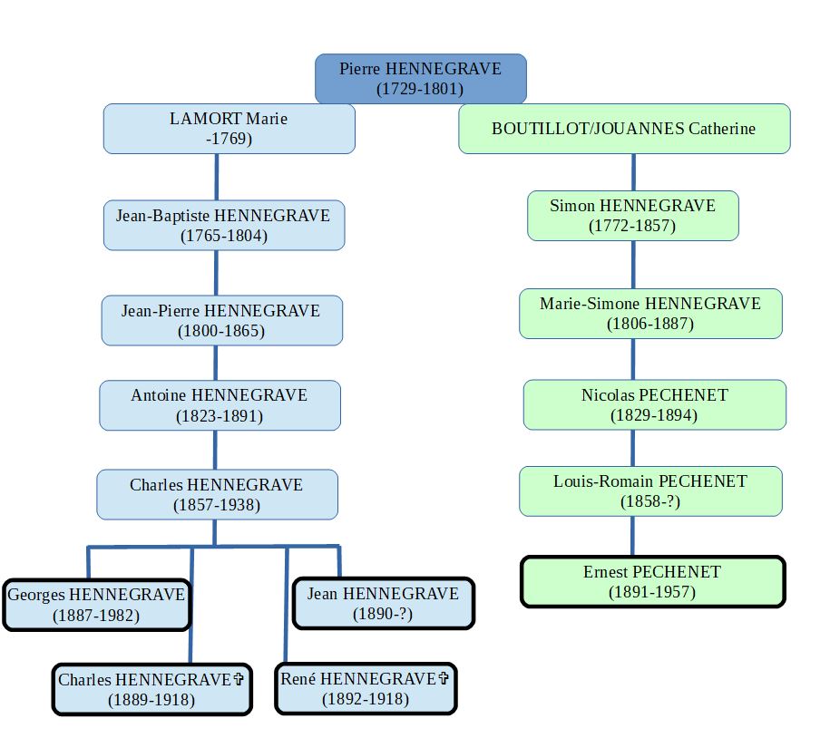 Les quatres frères Hennegrave sont des cousins éloignés de mon arrière-grand-père Ernest Péchenet.