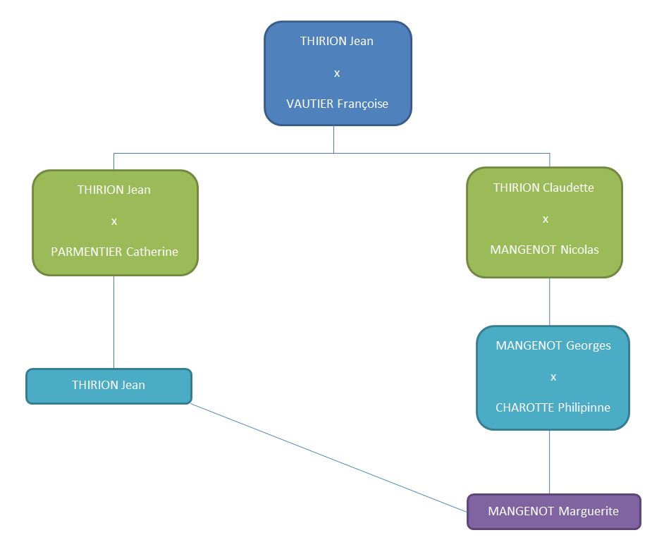 Marguerite, fille de Georges et Philippine Charotte épouse en 1682 Jean Thirion.