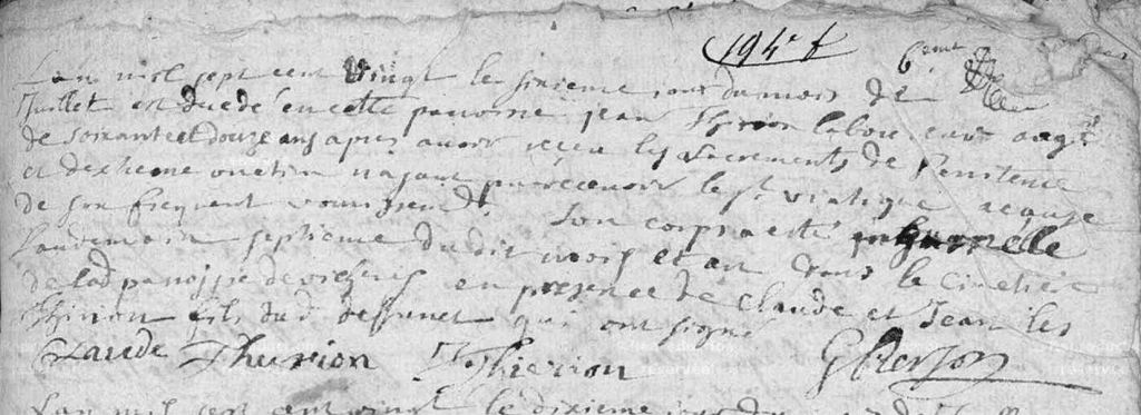 Marguerite décède le 5 mars 1688, laissant Jean seul avec les enfants.
