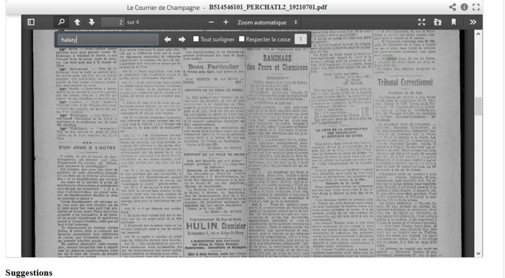Une fois un journal sélectionné, vous pouvez encore rechercher en plein texte. Le mot recherché apparait surligné.
