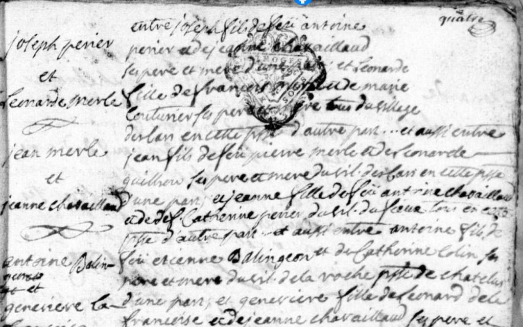 Ce jour-là le curé mariera plusieurs couples mais trouvera plus simple de ne rédiger qu’un seul acte. Parmi ces couples se trouvent Jean Merle un maçon de 16 ans originaire du lieu-dit des Cars et Jeanne Chavaillaud une cultivatrice du même âge qui elle vient du Fieux, ces deux lieux-dits dépendent de la commune de Saint-Goussaud.