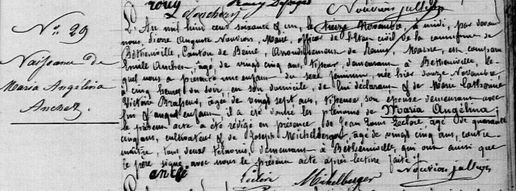 En faisant des recherches sur ma branche maternelle sur Bétheniville j’ai souvent croisé Joseph MICHELBERGER. Même si il ne fait pas partie de ma famille, il apparait très régulièrement dans mes actes.