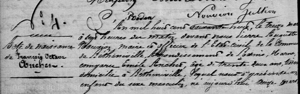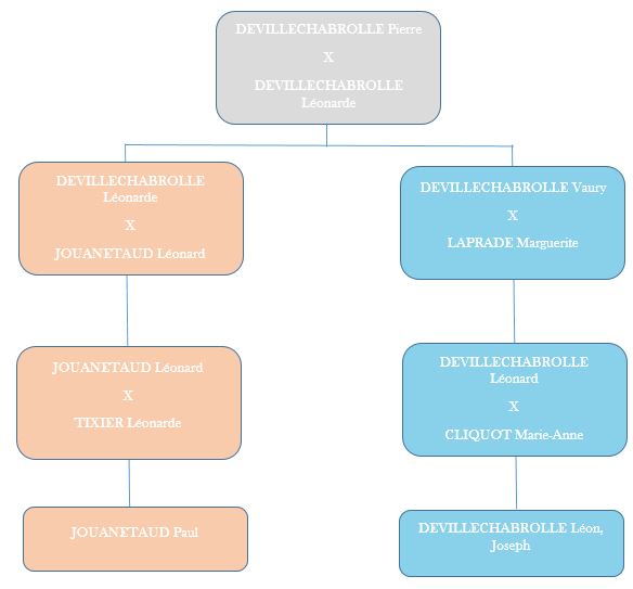 J’ai eu la surprise de découvrir parmi ses témoins Léon, Joseph DEVILLECHABROLLE un cousin éloigné de ma branche paternelle !
