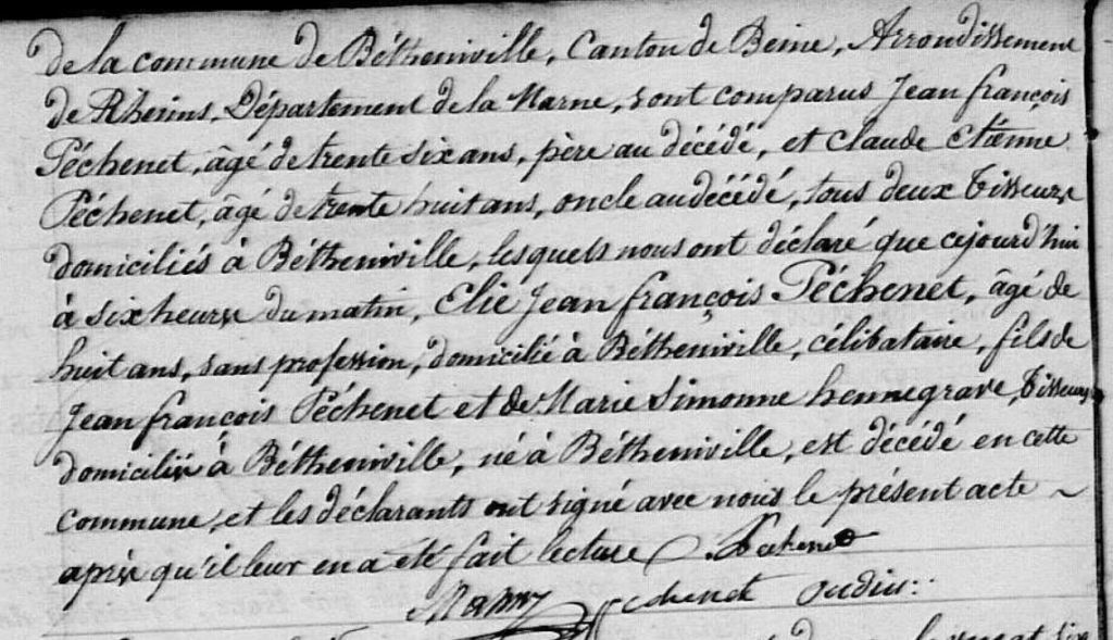 Acte de décès de Nicolas Hector Péchenet – Source AD 51 (en ligne)