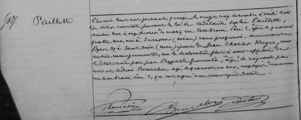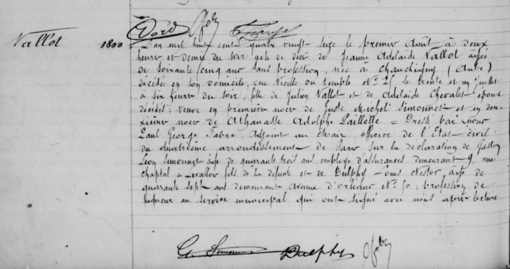 Jeanne Valot décède à Paris en 1896, elle est alors indiquée veuve d’Athanase.