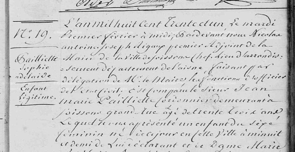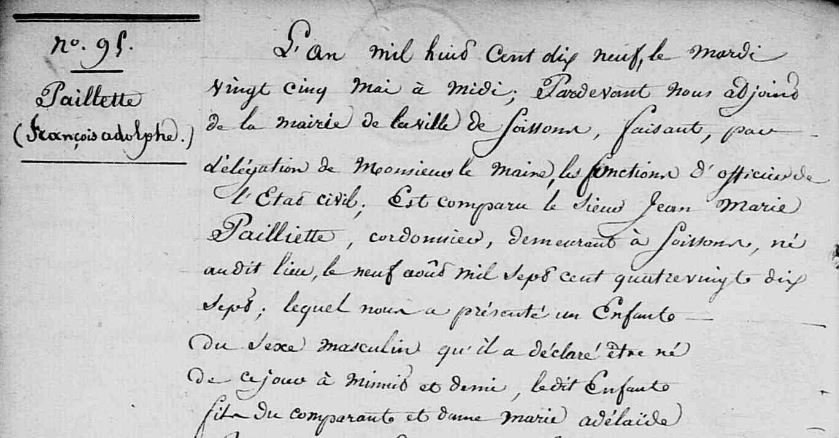 François Pailliette est né à Soissons en 1819, il est mon sosa 74. Il sera peintre en décors.