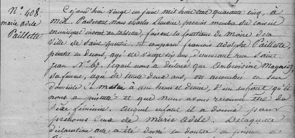 Le couple aura une fille Marie-Adèle qui est née le 21 juin 1845 toujours à Saint-Quentin.