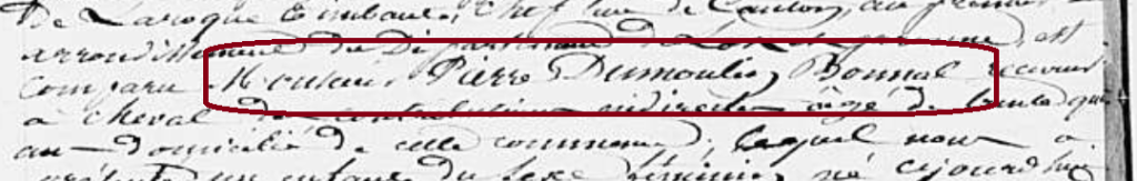 Il se peut que dans votre cas, il y est eu deux Pierre BONNAL, dont un s’est vu rajouter Du Moulin pour le différencier de l’autre?