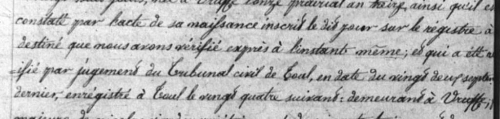 Extrait de l’acte de mariage citant le jugement du tribunal de Toul