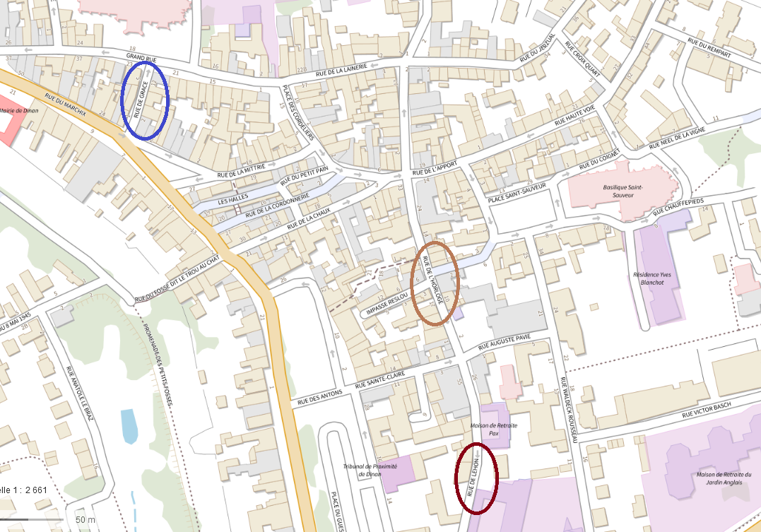 Mais lorsque Julien décède le 16 avril 1843, il avait encore déménagé et vivait rue de Léhon à Dinan.