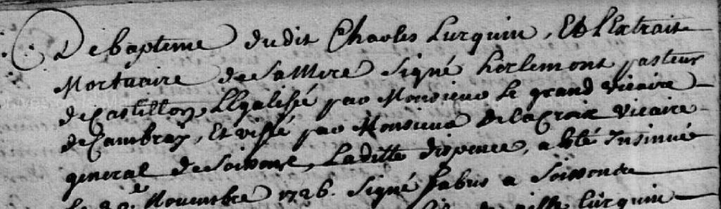Comme plusieurs descendants je me pose la question de savoir d’où venait Gilles LURQUIN pour pouvoir creuser. Aucune trace de la famille LURQUIN à Castillon avant son mariage. En effet Gilles a déjà été marié avant d’épouser Marie Marguerite. Quel est son pays d’origine? La Belgique, non loin de la? Est-il venu seul ou avec des membres de sa famille ? Par exemple Charles et Godfroy mentionnés sur certains actes?