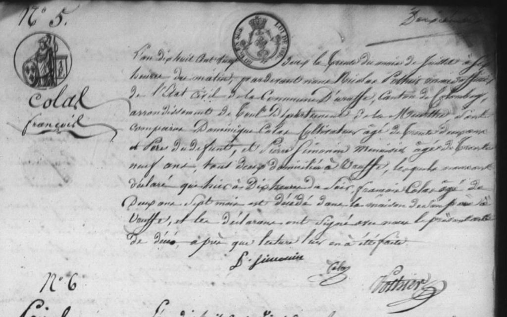 Le premier acte (trouble je sais 😦 ) place son décès à Uruffe à seulement 2 ans et 7 mois, le déclarant est son père.