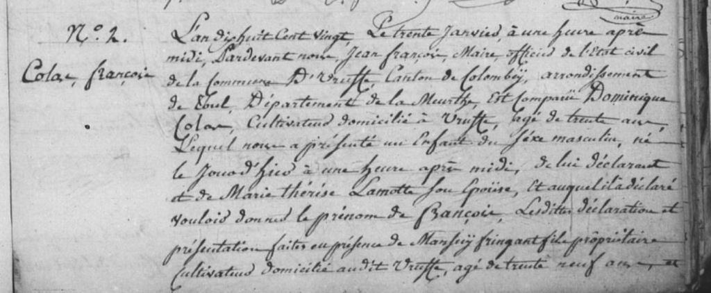 Je trouve sans problème la naissance de François à Uruffe le 30 janvier 1820.