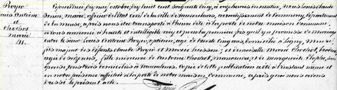 Promesse de mariage (qui n’a jamais eu lieu) entre Louis Antoine ROYER et Marie CHOCHOT
