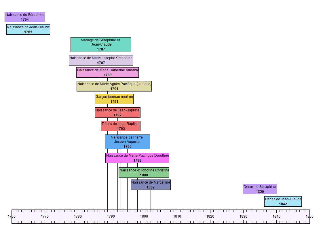 Séraphine décède le 26 mars 1835. Jean-Claude décède quant à lui le 22 janvier 1842.