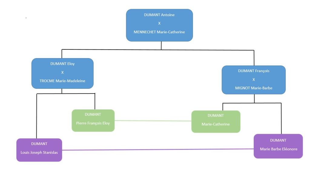 Il devient mulquinier et épouse Marie Barbe Eleonore DUMANT sa cousine germaine et la sœur de sa belle-sœur Marie-Catherine DUMANT.