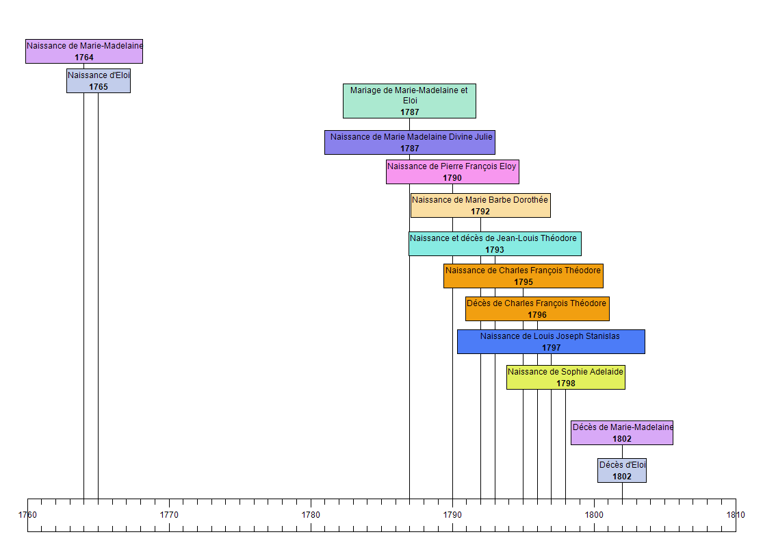 Marie-Madelaine est décédée le 10 octobre 1802. Elle était veuve depuis le 17 août de la même année quand Eloi est décédé.