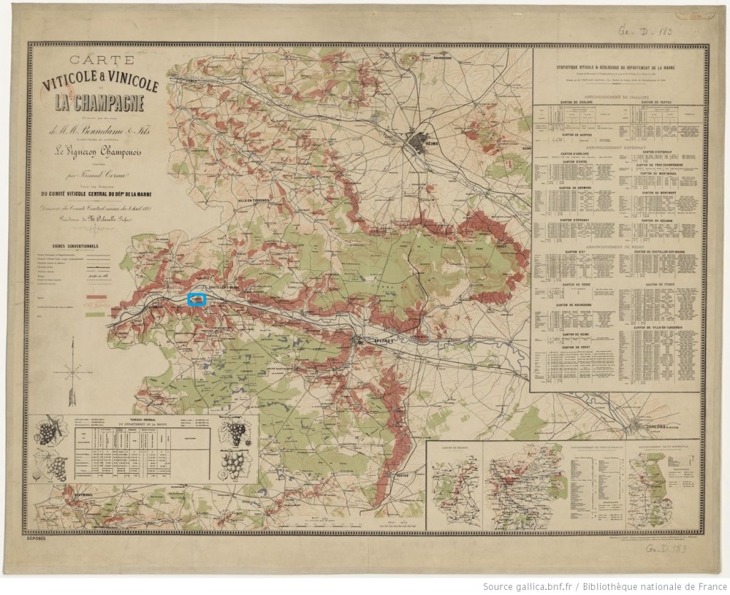 On peut remarque que sur cette carte viticole et vinicole de la Champagne datant du 19è siècle, Troissy se trouvait déjà dans les villages produisant du champagne.