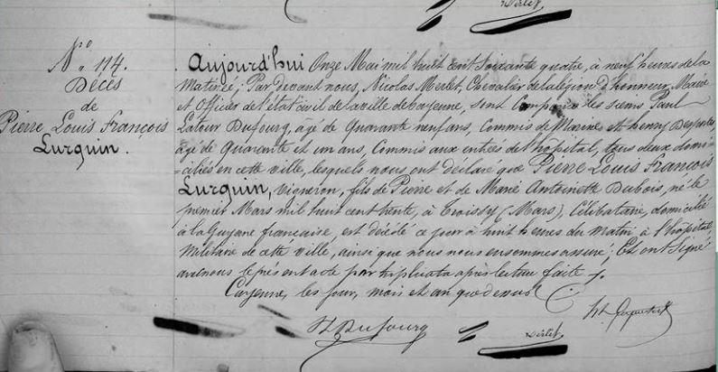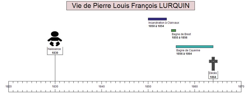 Dans la famille Lurquin, il semble qu’au moins l’un d’entre eux n’ai pas suivit les pas de sa famille. Il s’agit de Pierre Louis François le petit-fils de Pierre-Nicolas. Celui-ci a très souvent terminé devant la justice à tel point qu’il termina sa vie au bagne en Guyane.