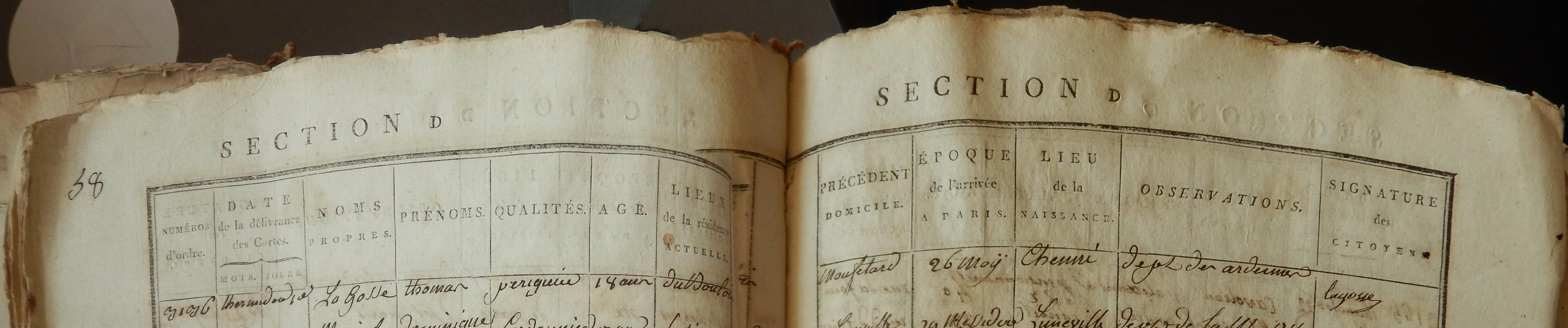 Il est perruquier et vit à Paris vers 1792 et 1793 comme l’attentent les cartes de la sureté de Paris ci-dessous