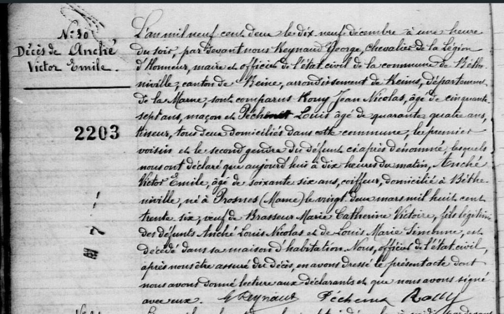 Il décède le 19 décembre 1902 à Bétheniville sans s’être remarié, il avait 66 ans.