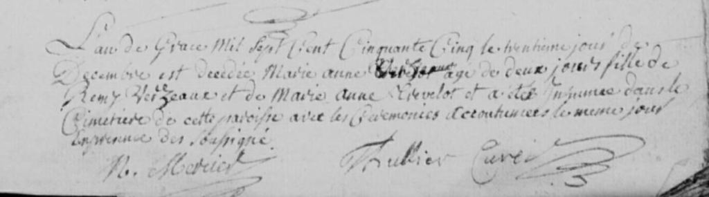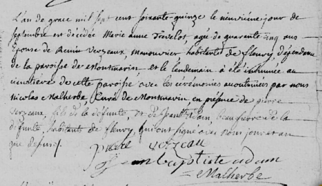 Marie-Anne TREVELOT, la femme de Remy décède le 9 septembre 1775 à seulement 45 ans.