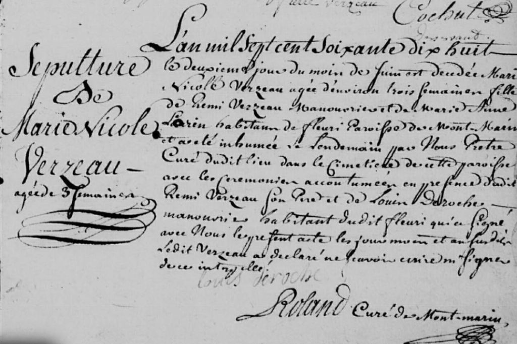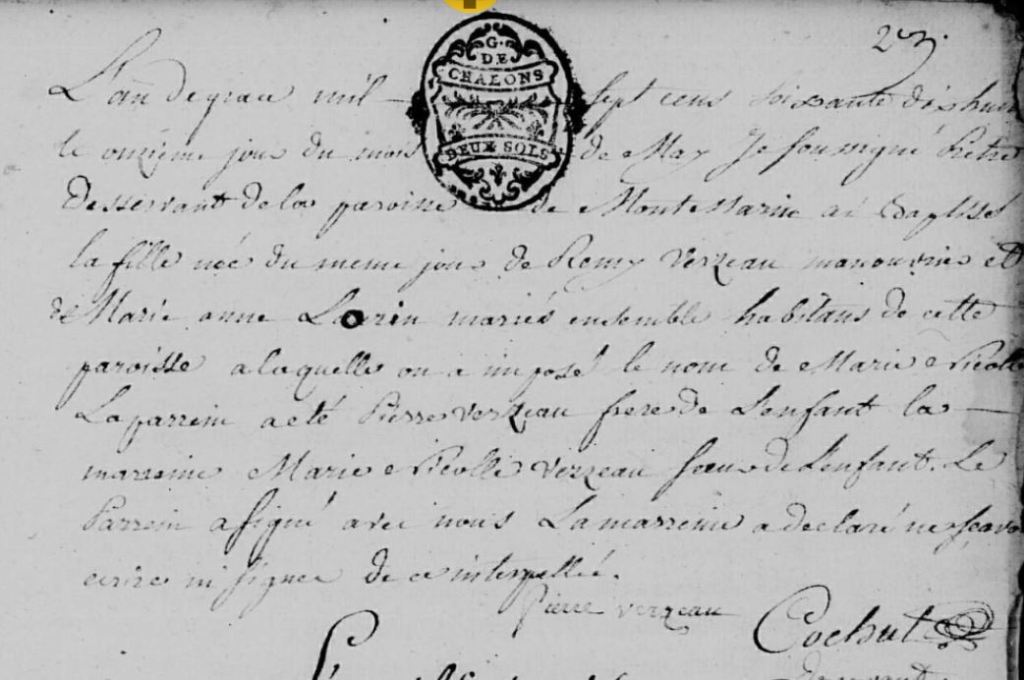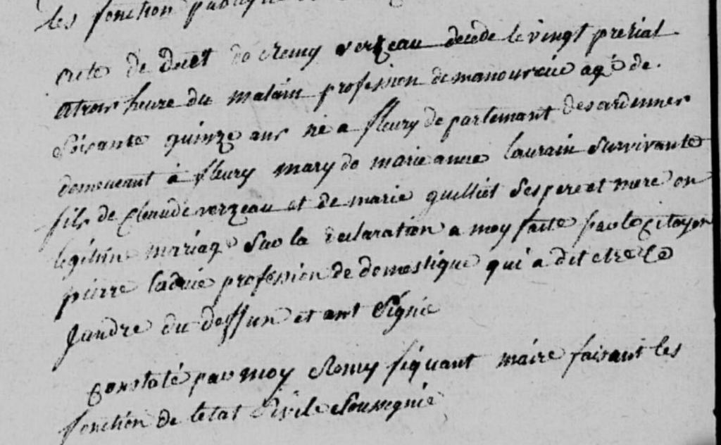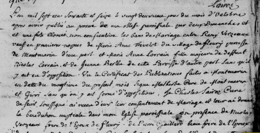 Rémy VERZEAUX est mon sosa 1012. Fils de Claude et Marie GUILLOT, il est né à Fleury le 22 novembre 1731.