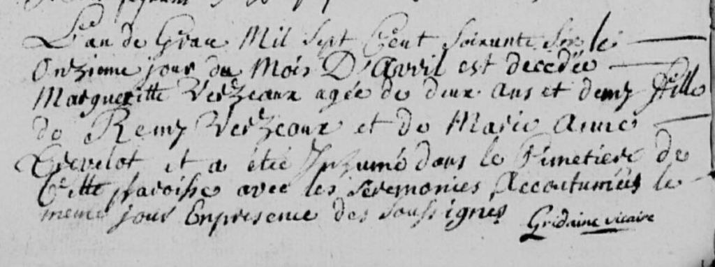 Je n’ai pas trouvé la date de naissance de Marguerite. Je n’ai que son décès le 11 avril 1766.