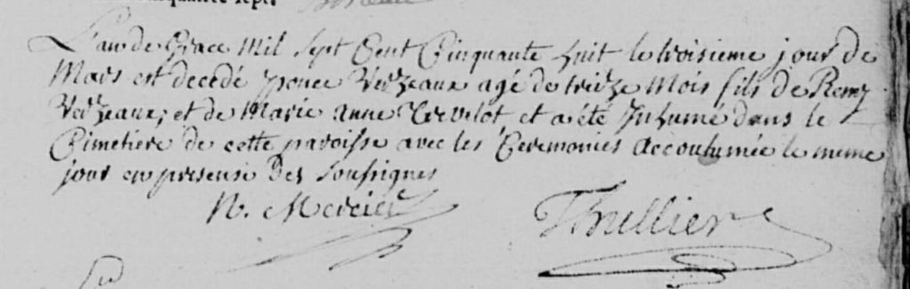 Il est né le 26 janvier 1757, mais décède à dix-huit mois le 3 mars 1758.