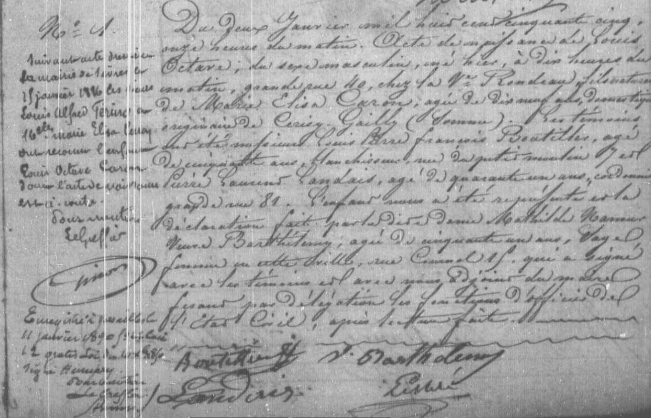 Louis Alfred déménage dans l’année 1855 à Paris car le 1e avril 1856, il épouse Marie-Elise Caron.