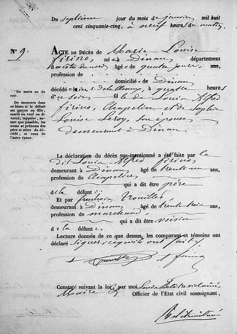 Il est à noté qu’il ne porte pas les même prénoms à la naissance et au décès. Il est probablement décédé dans le famille de sa mère qui vivait à Léhon à l’époque.