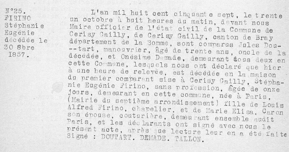 Stéphanie et Emile bien que nés à Paris sont tous les deux décédés à Cerisy (Somme).