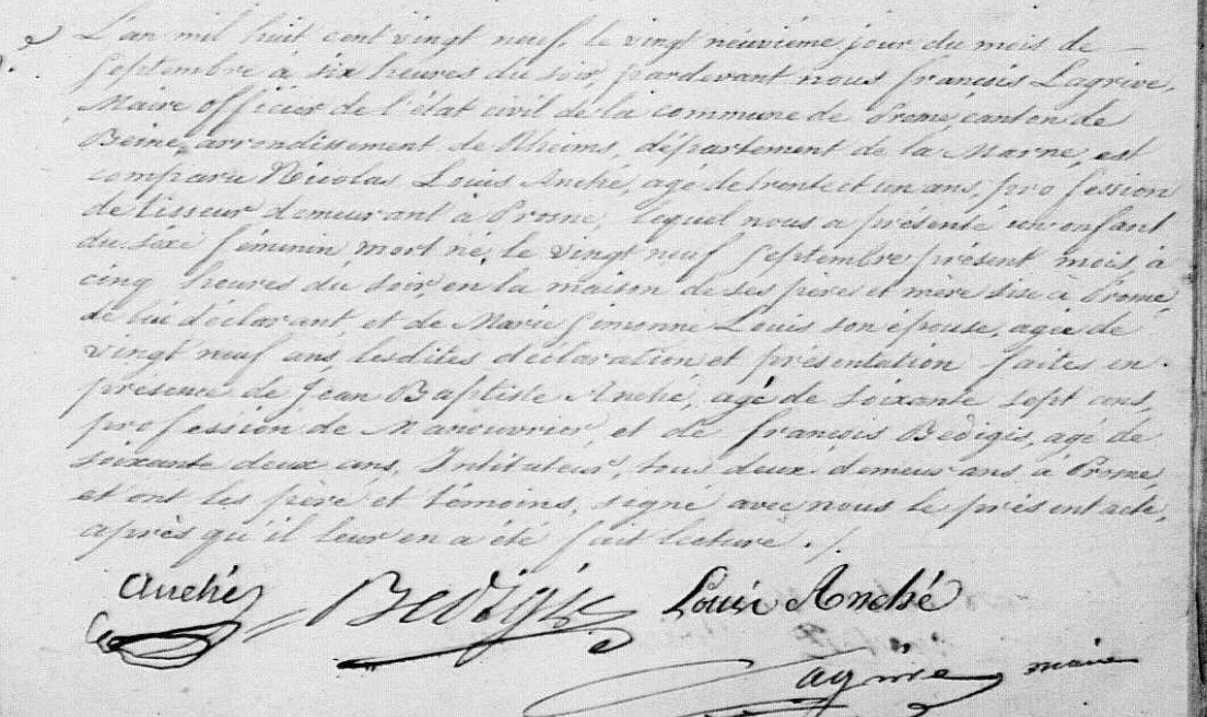 Elle épouse le 1èr juin 1824 à Prosnes, Nicolas ANCHE (ou ANCHET) lui aussi tisseur.