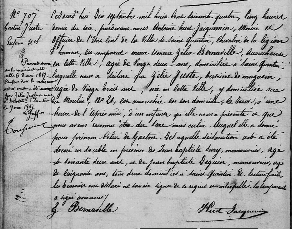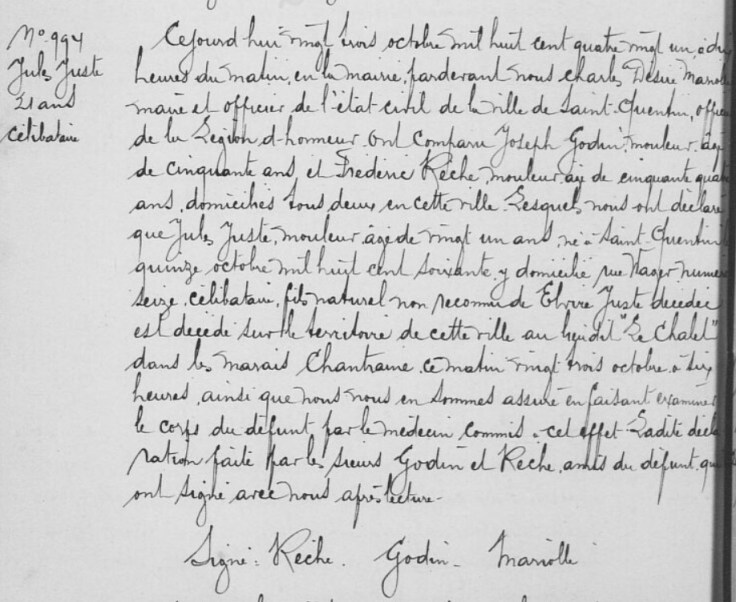 Jules ne fût jamais reconnu par sa mère; Il décède à Saint-Quentin à seulement 21 ans il était devenu mouleur.