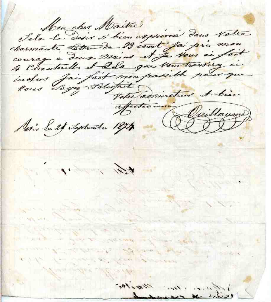 Lettre écrite par J-B Vuillaume au violoniste Martin-Pierre Marsik