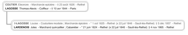 Marguerite, Eléonore est la seule enfant de François Coutier et Antoinette Landragin dont j'ai eu connaissance pendant longtemps.Tout comme ses parents je ne connais pas sa date de naissance. Cependant elle a épousé vers 1824 ou 1825 un coiffeur Thomas Alexis Lagosse né à Vouziers, elle était alors marchande épicière. Elle accouche à Rethel le... Lire la Suite →