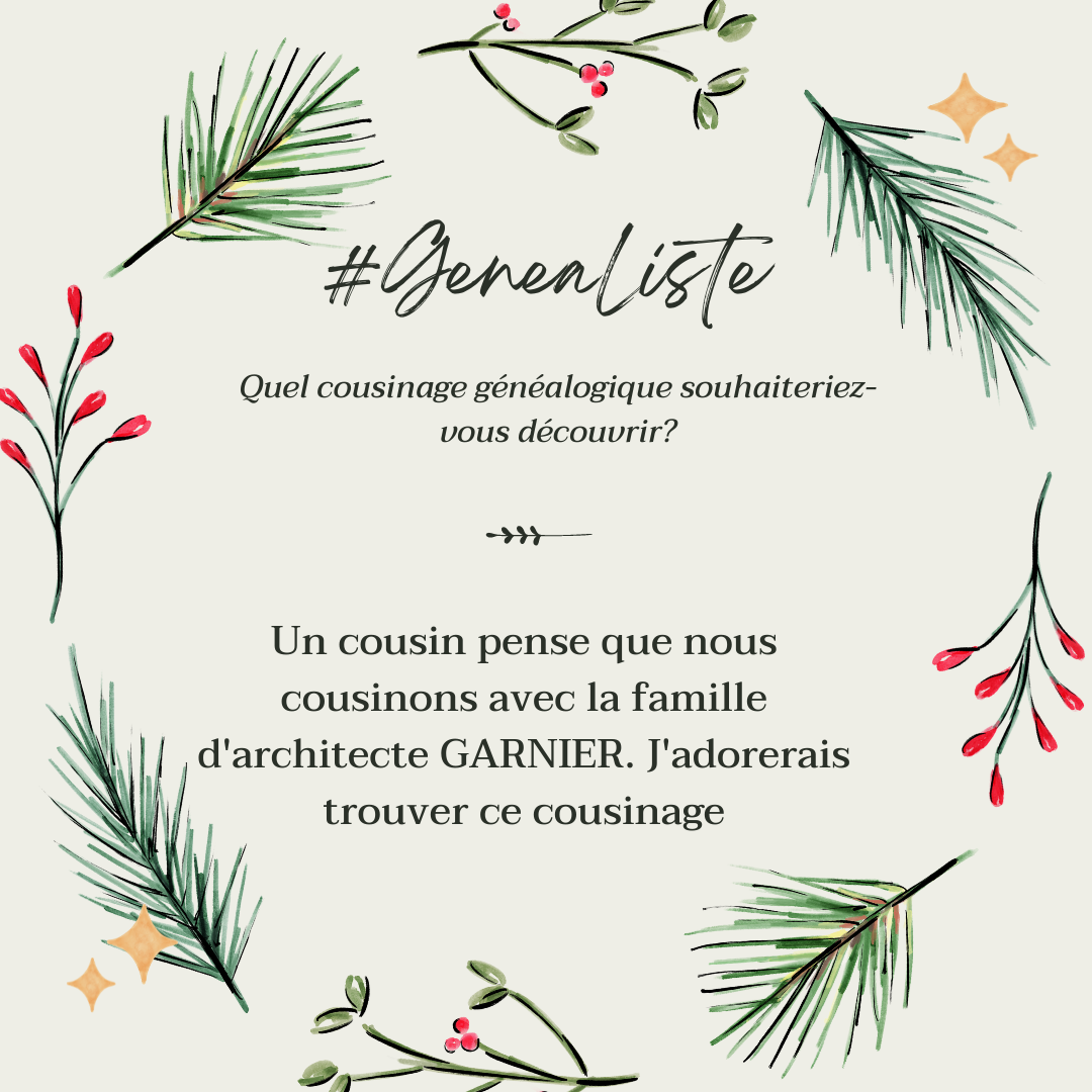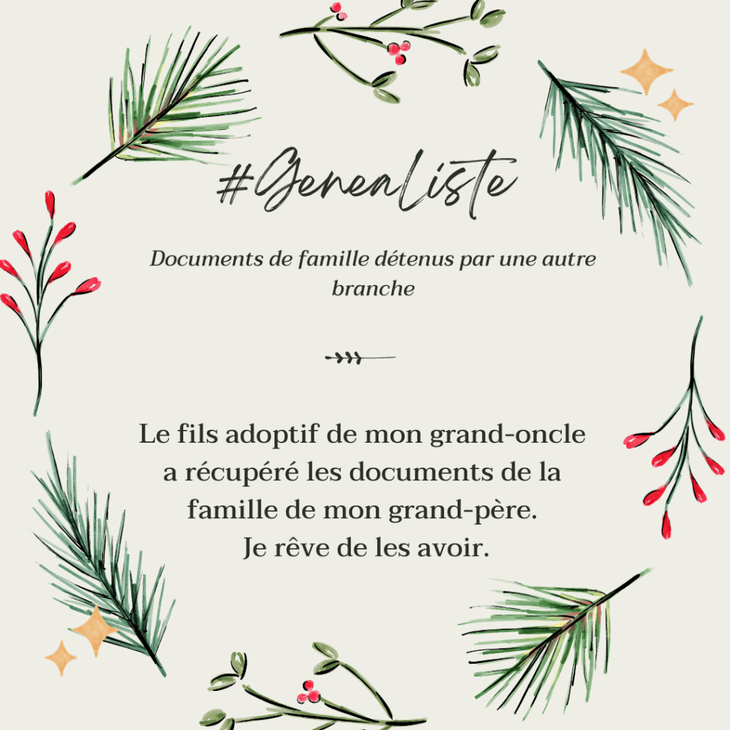 Geneatech propose de faire notre Genealiste de Noël en suivant les thèmes proposés. Voici la mienne qui sera mise à jour quotidiennement en ce mois de décembre 2021.