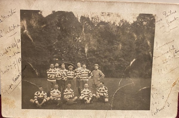 C'est le titre de cette photo retrouvée dans les photos de famille. Titre insolite pour cette photo représentant certes des poilus mais pas du tout en uniforme vu que c'est l'équipe de football de l'ambulance 14/10. Cette photo a été prise le 22 octobre 1916 suite à un match contre l'ambulance 7/10. Je ne sais... Lire la Suite →