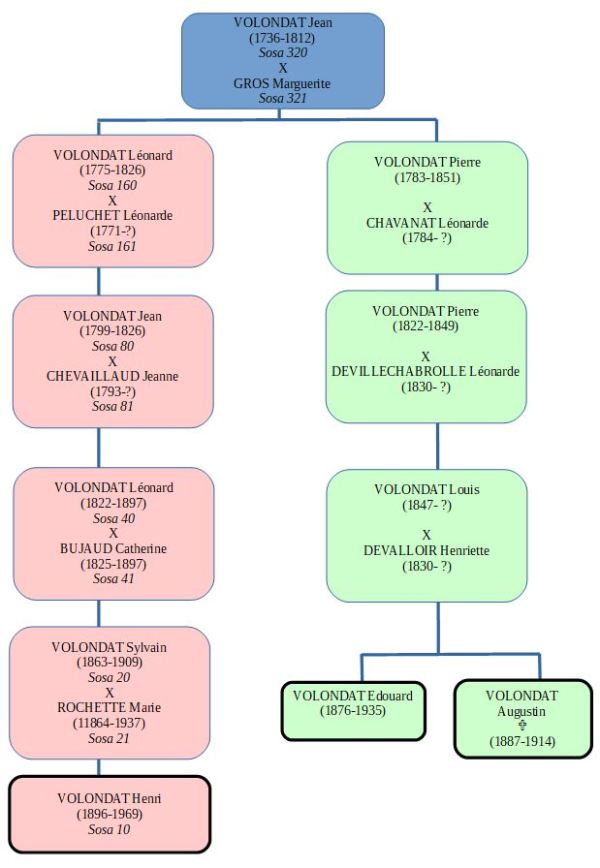 Edouard et Augustin Volondat sont des cousins éloignés de mon arrière-grand-père Henri Volondat. Ils ont vécu avant guerre à a peine 10 km les uns des autres. Comment cousinons-nous ? Fils de Louis et Henriette Devaloir, Edouard deviendra menuisier et Augustin maçon. Edouard Volondat Il est né le 27 août 1876 à Mourioux dans la Creuse.... Lire la Suite →