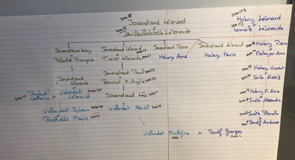 En continuant mes recherches pour mon projet 57 couples, j'ai découvert que les branches de mes grands-parents paternels étaient liés. Les villages de la Creuse apportent quand même de drôles de surprises. Pour y voir clair j'ai dessiné l'arbre à la main. Vous pouvez zoomer pour y voir plus clair.